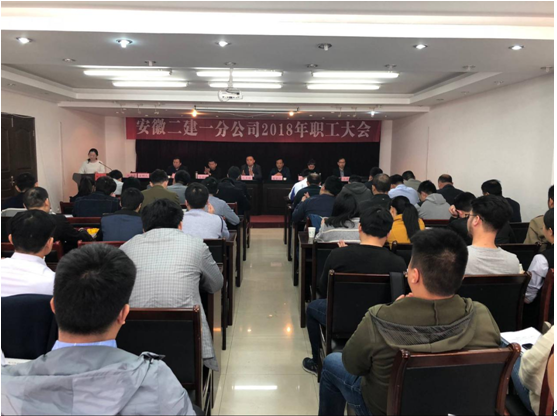 3月28日,一分公司2018年職工大會隆重召開。來自各項目的技術骨干、分公司機關全體員工共計51名職工歡聚一堂,總結2017年度分公司各項工作,共商2018年發展大計。公司紀委書記仇多維、工會副主席蒯家江到會指導。會議由分公司黨支部書記倪海霞主持。