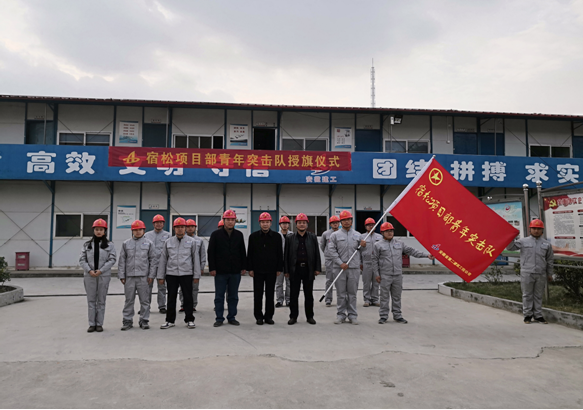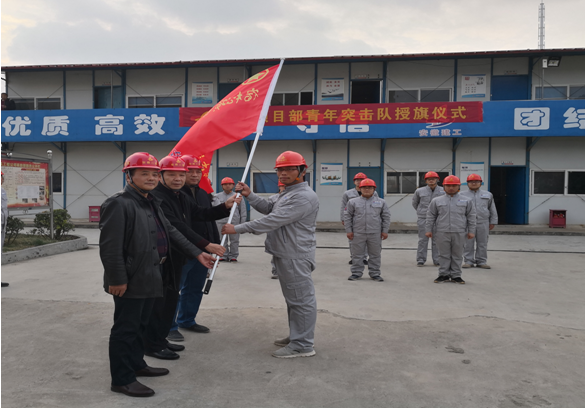 11月20日,宿松項(xiàng)目部結(jié)合公司“大干60天”勞動(dòng)競賽活動(dòng)熱潮,在公司工會(huì)、團(tuán)委的支持下組建了安徽二建首支“青年突擊隊(duì)”,公司工會(huì)主席李林、副主席蒯家江、分公司支部書記陳習(xí)武應(yīng)邀參加了“青年突擊隊(duì)”授旗儀式并進(jìn)行授旗。