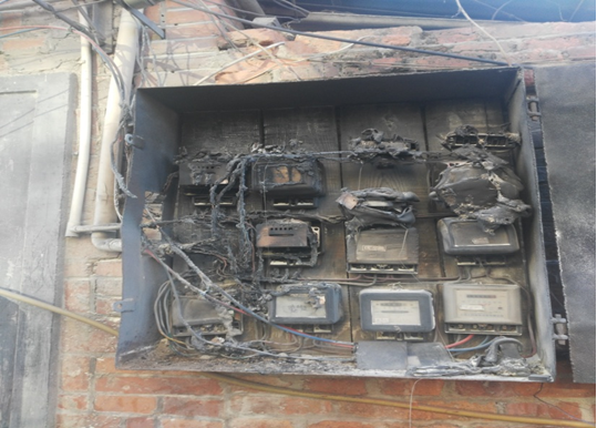 7月21日清晨5點(diǎn),后勤綜合服務(wù)部物管辦接到原二分公司生活基地管理員緊急電話,生活區(qū)平3棟電表箱因持續(xù)高溫用電負(fù)荷增大,線路老化嚴(yán)重造成電表自燃,表箱整體燒毀。由于消防器材的配備完善,平時(shí)對居民防火意識的宣傳到位,撲救及時(shí),未造成重大火災(zāi)及財(cái)產(chǎn)損失。接到電話后,后勤物管辦立即安排專業(yè)技術(shù)人員趕赴現(xiàn)場,對事故現(xiàn)場進(jìn)行全面的排查檢修,在不影響整個(gè)小區(qū)居民正常用電的情況下,首先斷開這一棟平房主電源解除安全隱患,在本著以最快速度解決問題和節(jié)約成本的前提下,對現(xiàn)場進(jìn)行了梳理,就地制定解決施工方案并及時(shí)匯報(bào)領(lǐng)導(dǎo)實(shí)施操作。